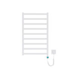 Grzejnik elektryczny TRIX wyposażony jest w grzałkę elektryczną o mocy 200 W oraz panel sterujący z czytelnym wyświetlaczem. Urządzenie umożliwia płynną regulację temperatury w zakresie od 30°C do 70°C. Obudowa spełnia wymagania klasy szczelności IPX4, co oznacza odporność na zachlapanie, umożliwiając bezpieczną instalację w pomieszczeniach o podwyższonej wilgotności.